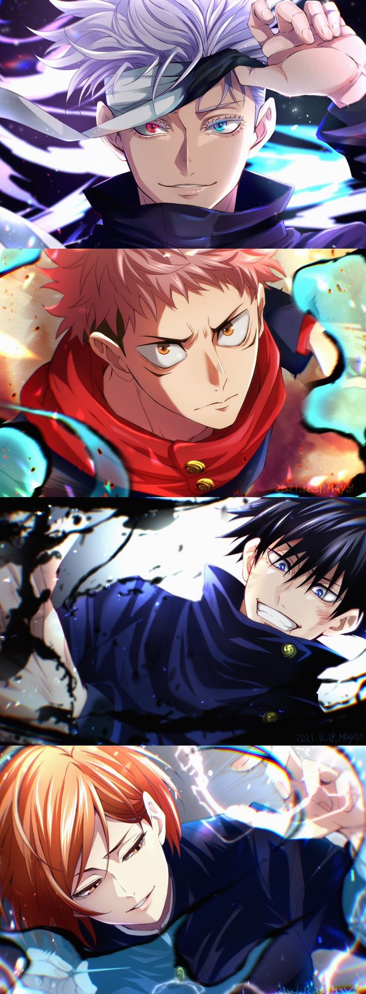 Personagens Incríveis e Carismáticos Jujutsu Kaisen é conhecido pelos seus personagens memoráveis. Megumi Fushiguro, que usa shikigamis amaldiçoados; Nobara Kugisaki, com sua poderosa técnica de boneca de palha; e Satoru Gojo, o feiticeiro mais forte do mundo, capaz de dominar o Infinito. Cada personagem possui um desenvolvimento profundo e técnicas únicas.